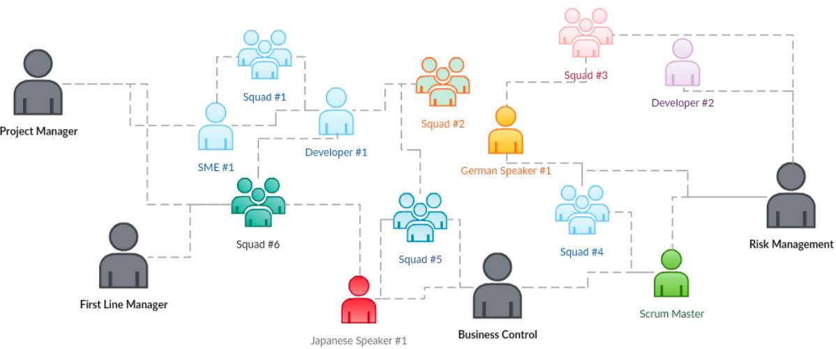 Each Individual will be part of a squad that is categorized by the function of the “squad” also specialized in something that might be a language or a technical skill which is bonded to the individual depending on that skills. Those teams are preferably under a Agile PM with co-located and distributed teams where the face to face is not always possible. The tool will capture the mood of all the individuals anonymously and on daily basis.