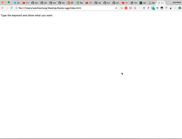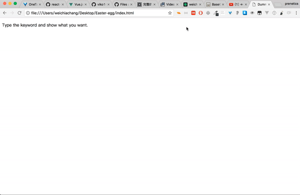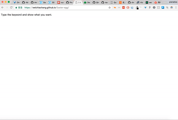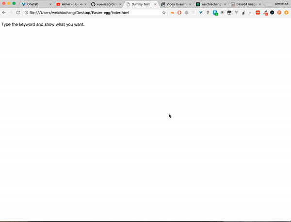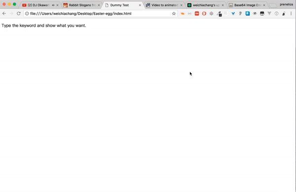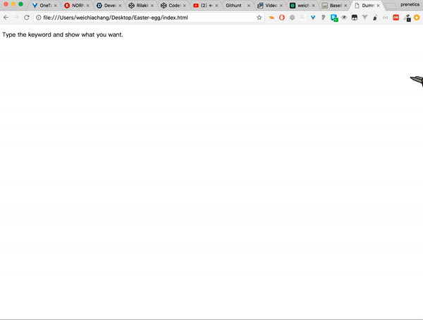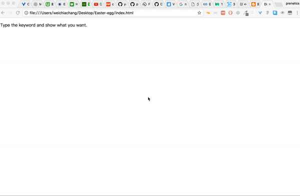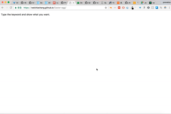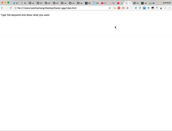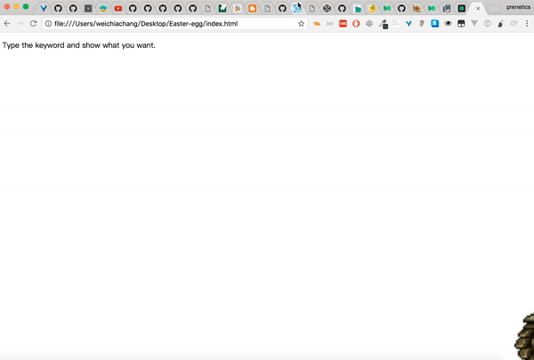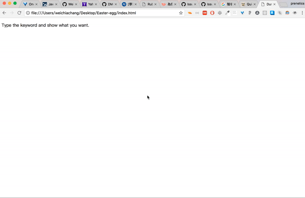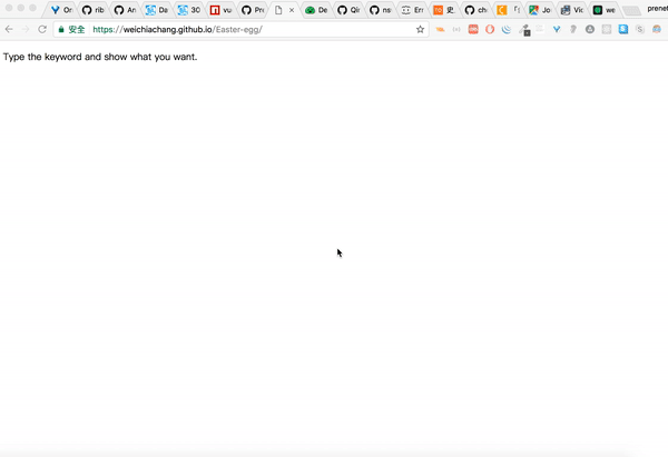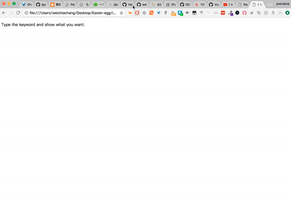 <script src="https://rawgit.com/WeiChiaChang/Easter-egg/master/easter-eggs-collection.js"></script>Or using npm: