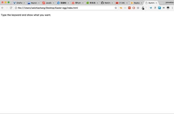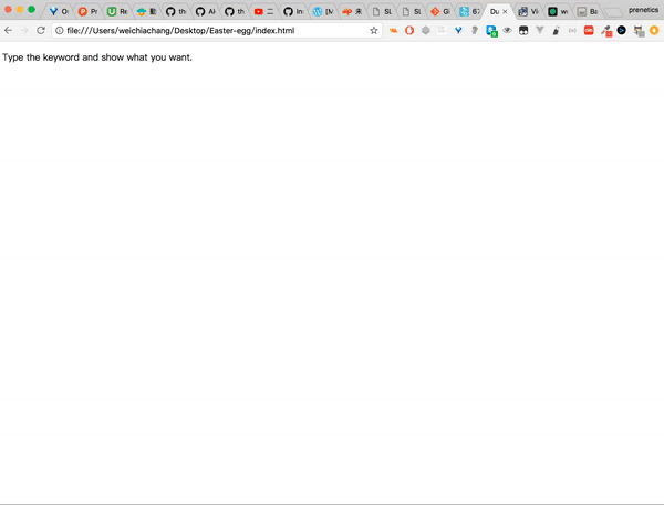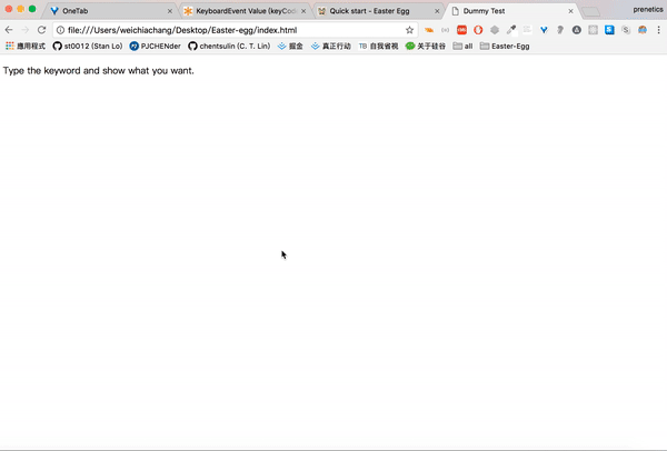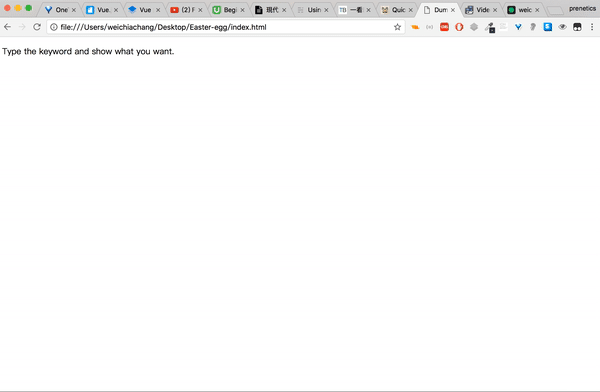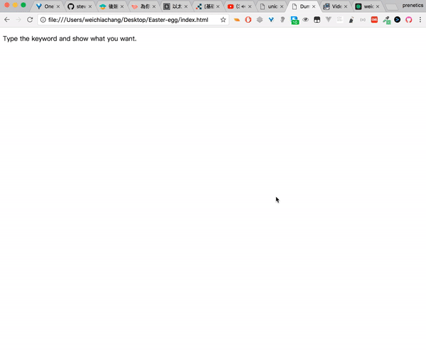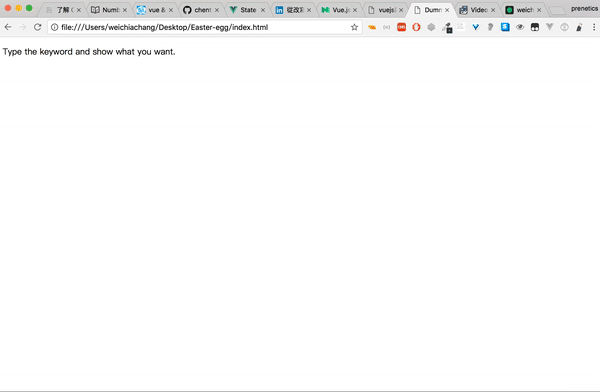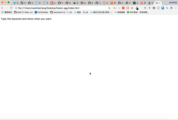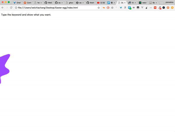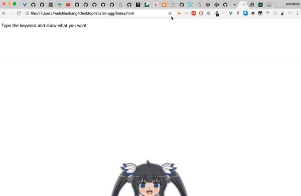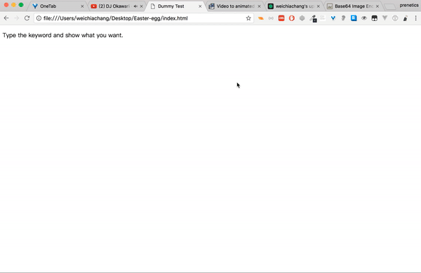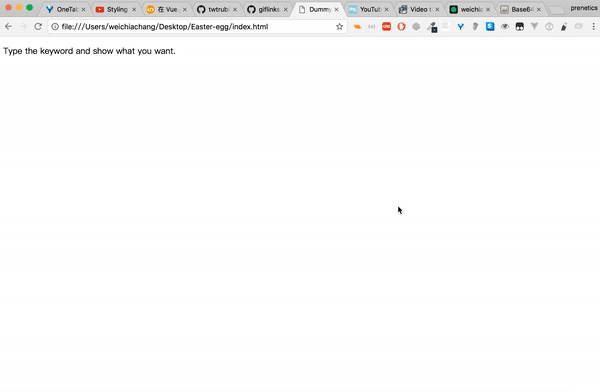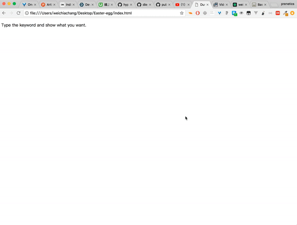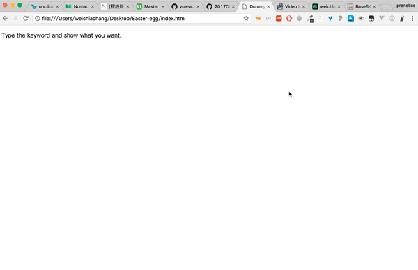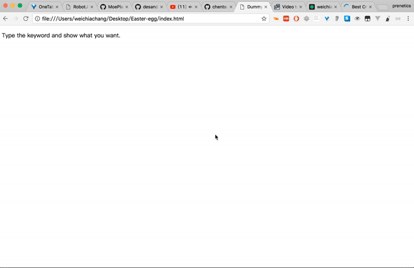 <script src="https://rawgit.com/WeiChiaChang/Easter-egg/master/easter-eggs-collection.js"></script>Or using npm: