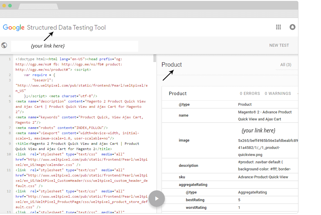 Note: Do not forget to login to Google account for the Google Structured Data Testing Tool to work Based on Google policy this data will be shown in the search results. Stores using this data structure will be highly advantaged by search engines, like Google, Yahoo, Bing and other search engines.