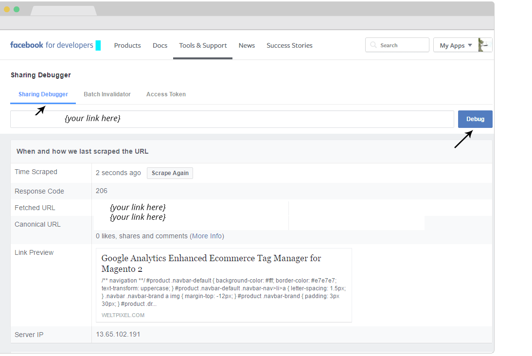 Note: Do not forget to login to Facebook Open Graph for the Facebook Developpers Tool to work Based on Google policy this data will be shown in the search results. Stores using this data structure will be highly advantaged by search engines, like Google, Yahoo, Bing and other search engines.
