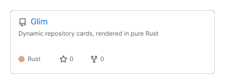 Glīm (pronounced 'gleem') is a command-line tool and web-server for generating beautiful, dynamic cards for your GitHub repositories.