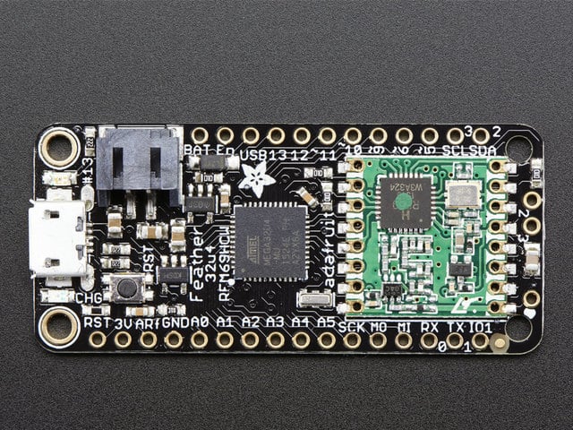 Adafruit Feather 32u4 Radio boardThe board is connected to both cameras and sends a trigger signal to both cameras at the same time. The cameras are programmed to capture an image when they receive the trigger signal.