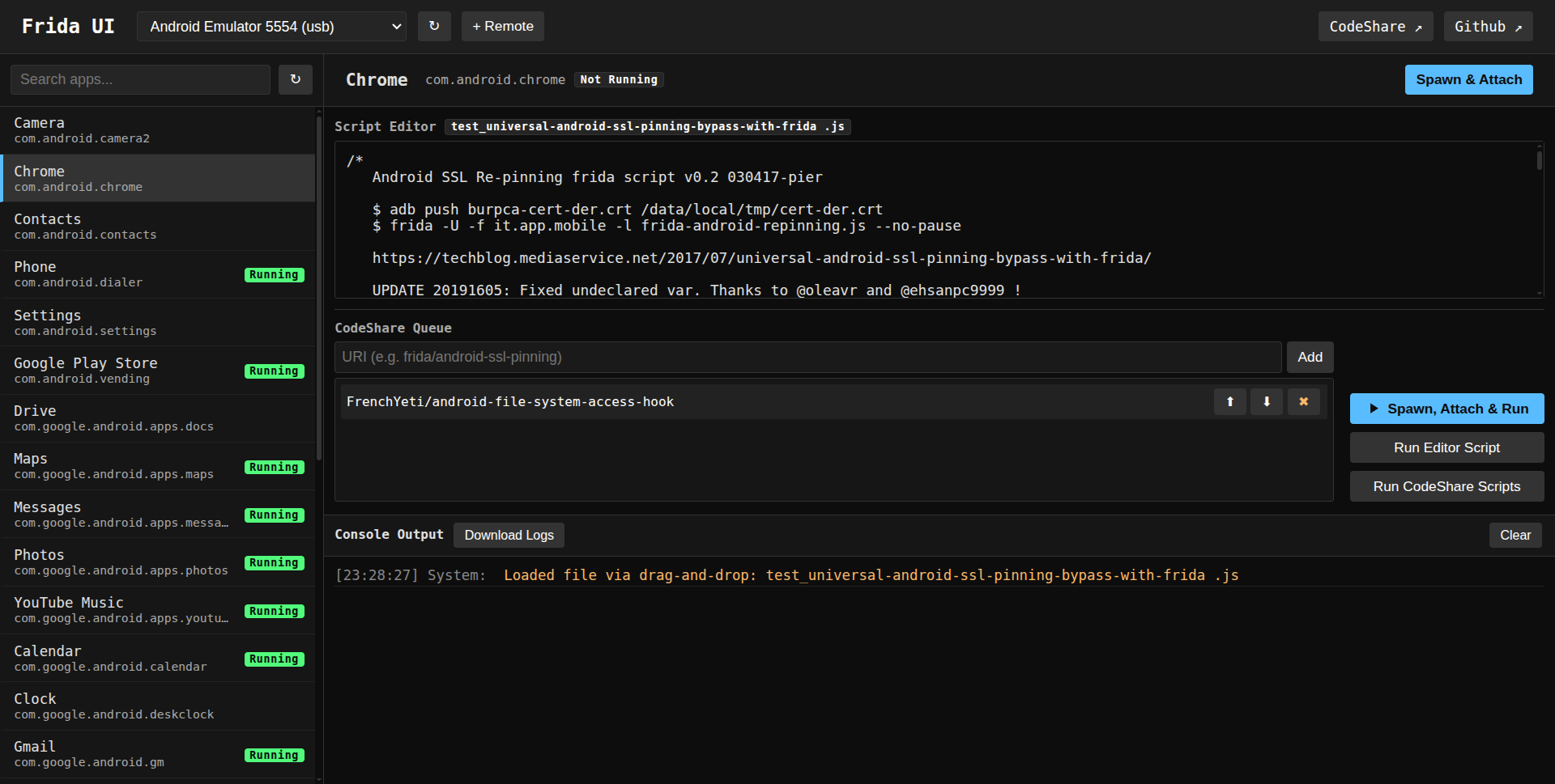 - Spawn & Run: Launch an app and immediately inject a script (early instrumentation).