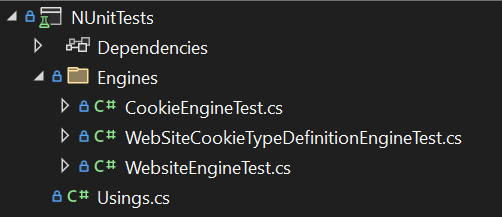The widely used NUnit Framework was used to write the tests. Let's examine the CookieEngineTest class for example purposes.