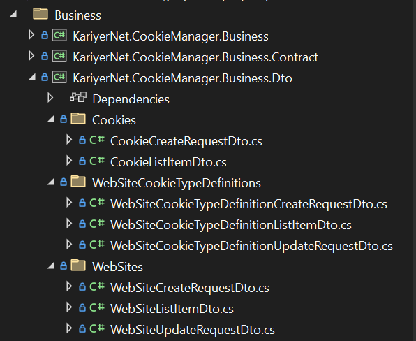 In the second sprint, the N-Tier architecture was adjusted, while editing, classes that did not have additional required snapshots were also included. Let's examine the result of the project in the .NET Core environment, first let's examine the file hierarchy.