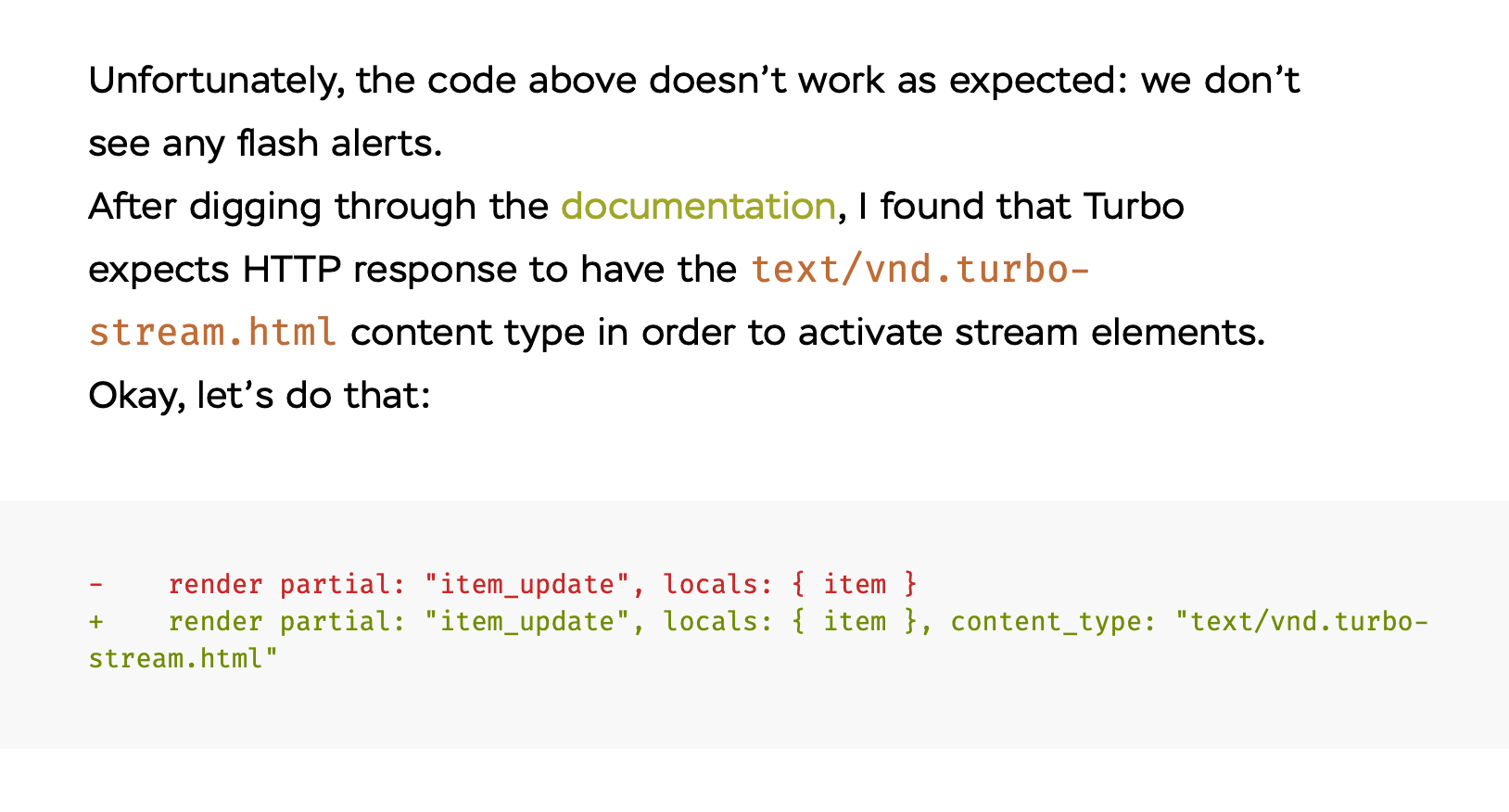 confusion in your (great!) article. See the text/vnd.turbo-stream.html content type in order to activate stream elementsTurbo::StreamsHelper documentation for more.