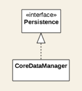 Next, we need a class that is responsible for storing the notes and their associated data in the local persistence. We don´t want to be too specific at this point as we have not defined yet what local persistence means. It could be the filesystem or an SQLite database. We could also choose CoreData