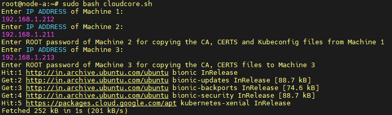 sudo bash cloudcore_node.sh (Run in machine-1)