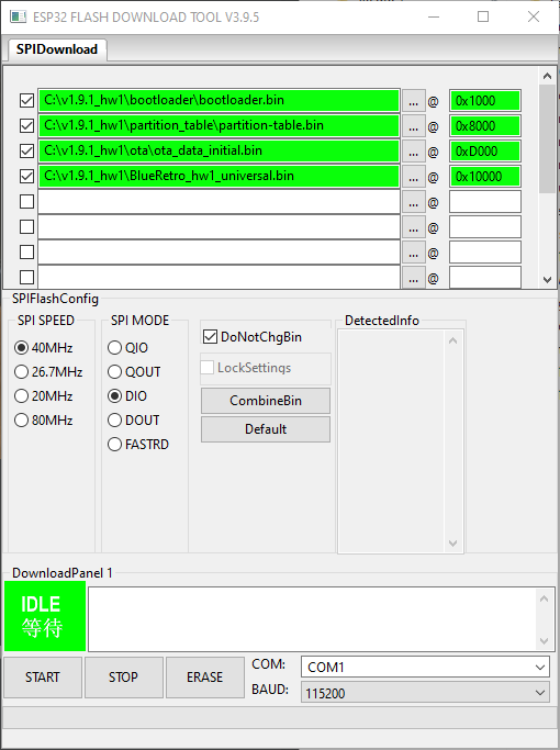 - Select and check the first 3 binary files in the first 3 fields and match the option as in the screenshot.