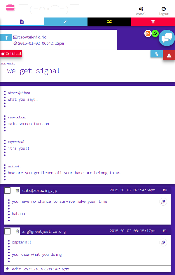 Bunzilla is a simple, standalone bug tracker with a bright and colorful UI designed for small teams.