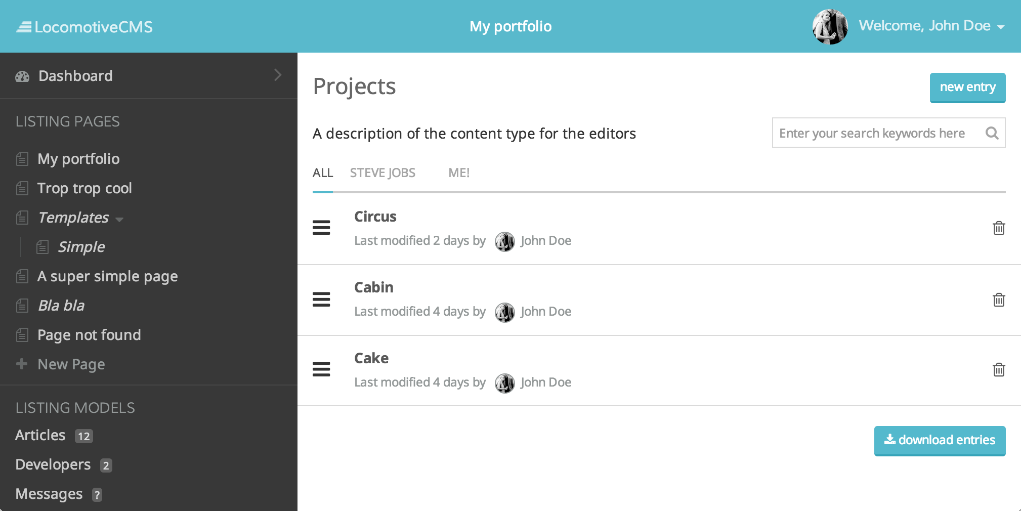 - A back-office for the end-users is automatically generated based on the custom models and editable regions described by the developers.