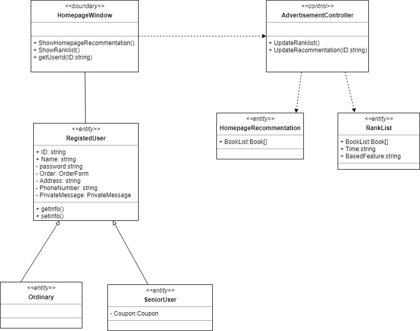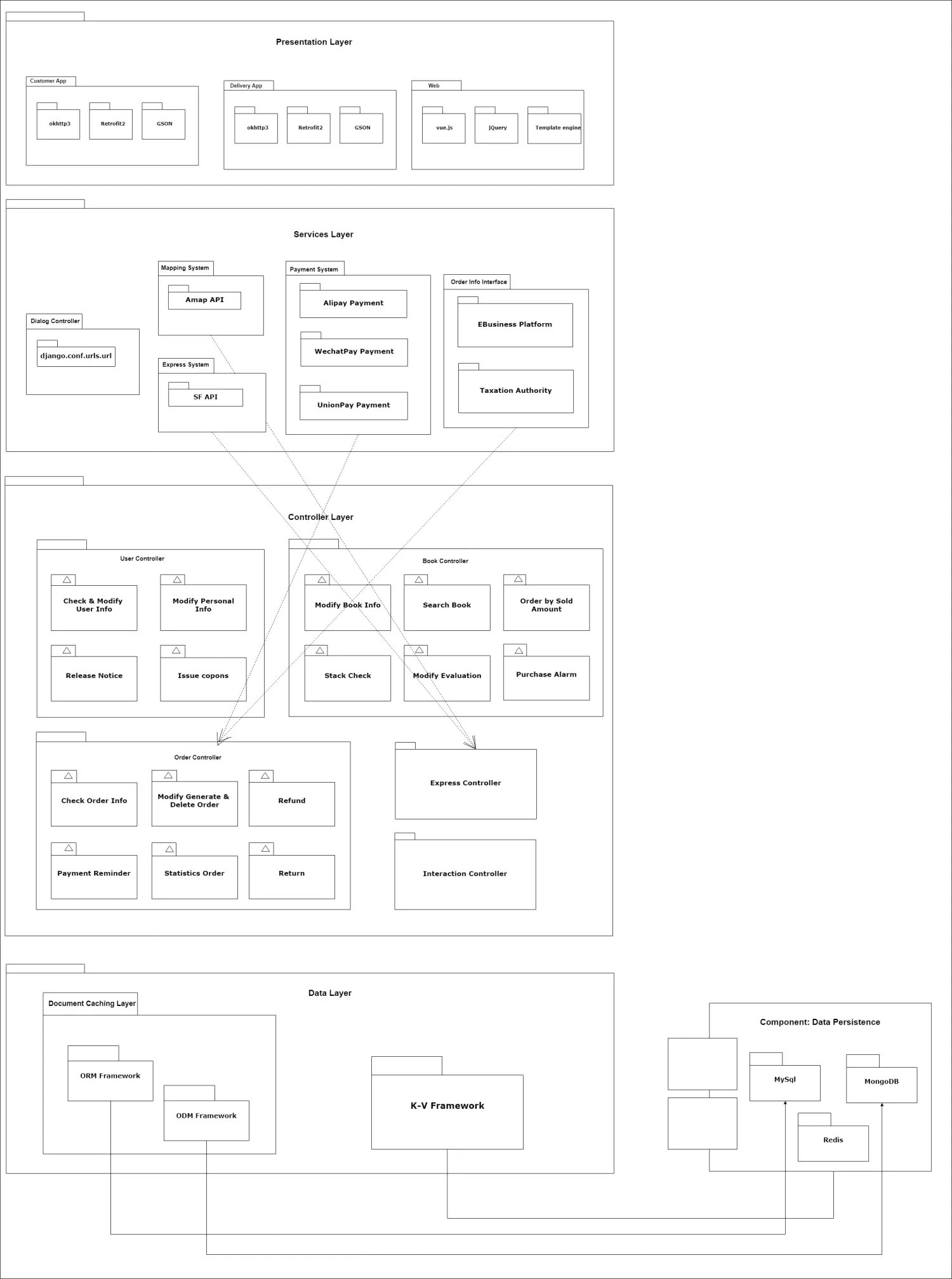 For the use case diagram, we integrated the original user and administrator use case diagrams together, and deleted some redundant relationships, increasing the types and generalization of users. For activity diagrams, in order to clarify the behavior of different participants in the activity, we added swim lanes for each activity map and optimized the layout of the activities. For the system snapshot, in order to match the Chinese style theme of "Yu Mu Shu Wu", we redesigned a corresponding UI and added a mobile prototype. In order to clarify the system architecture, reduce system redundancy and facilitate teamwork, we layered the whole system and gave the system package diagram, and analyzed and clarified the architecture of the whole system. For the design of the domain model, we designed the concept class based on the principle of focusing on the application side rather than the system design, drawing the overall concept class diagram, adding the relationship between the classes, and finally sorting into tables.