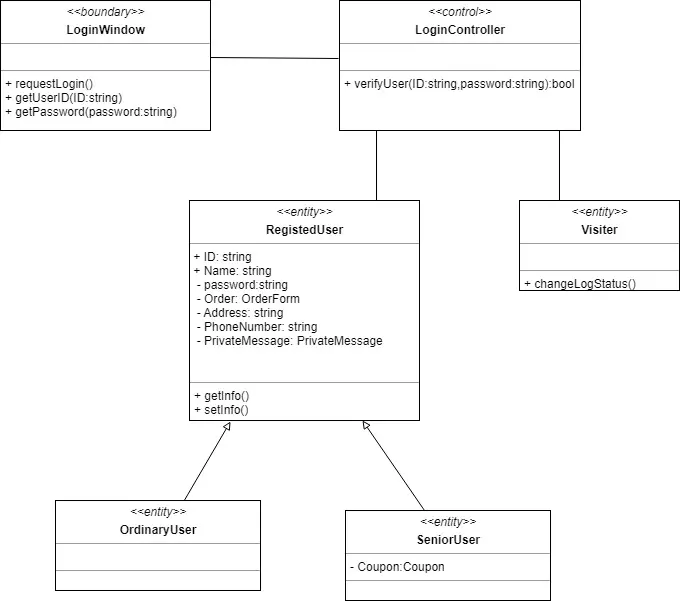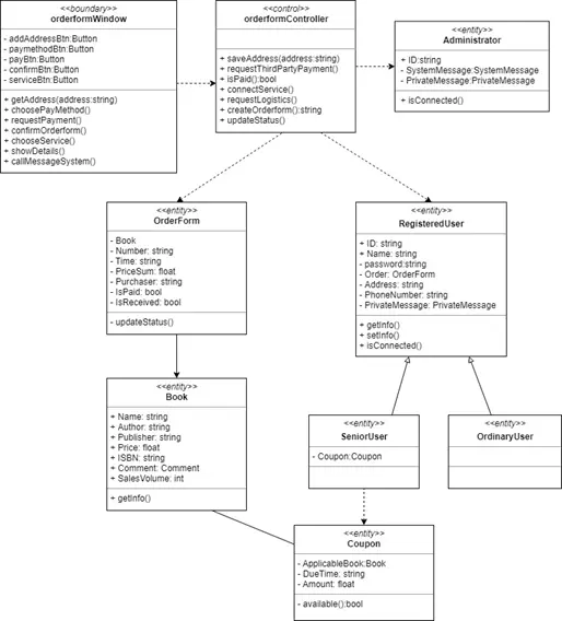 As for users: have access to check and alter part of the personal information, be able to search, add to shopping cart, add to order form and ask for after-sale service, can share own reading schedule and comments.