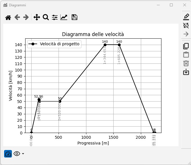 L'applicazione calcola i seguenti diagrammi delle velocità.