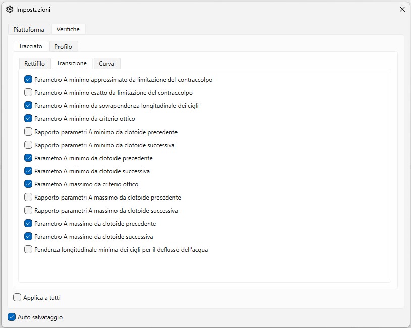 - Il tipo di elemento di transizione planimetrica non viene verificato: si assume che sia una clotoide