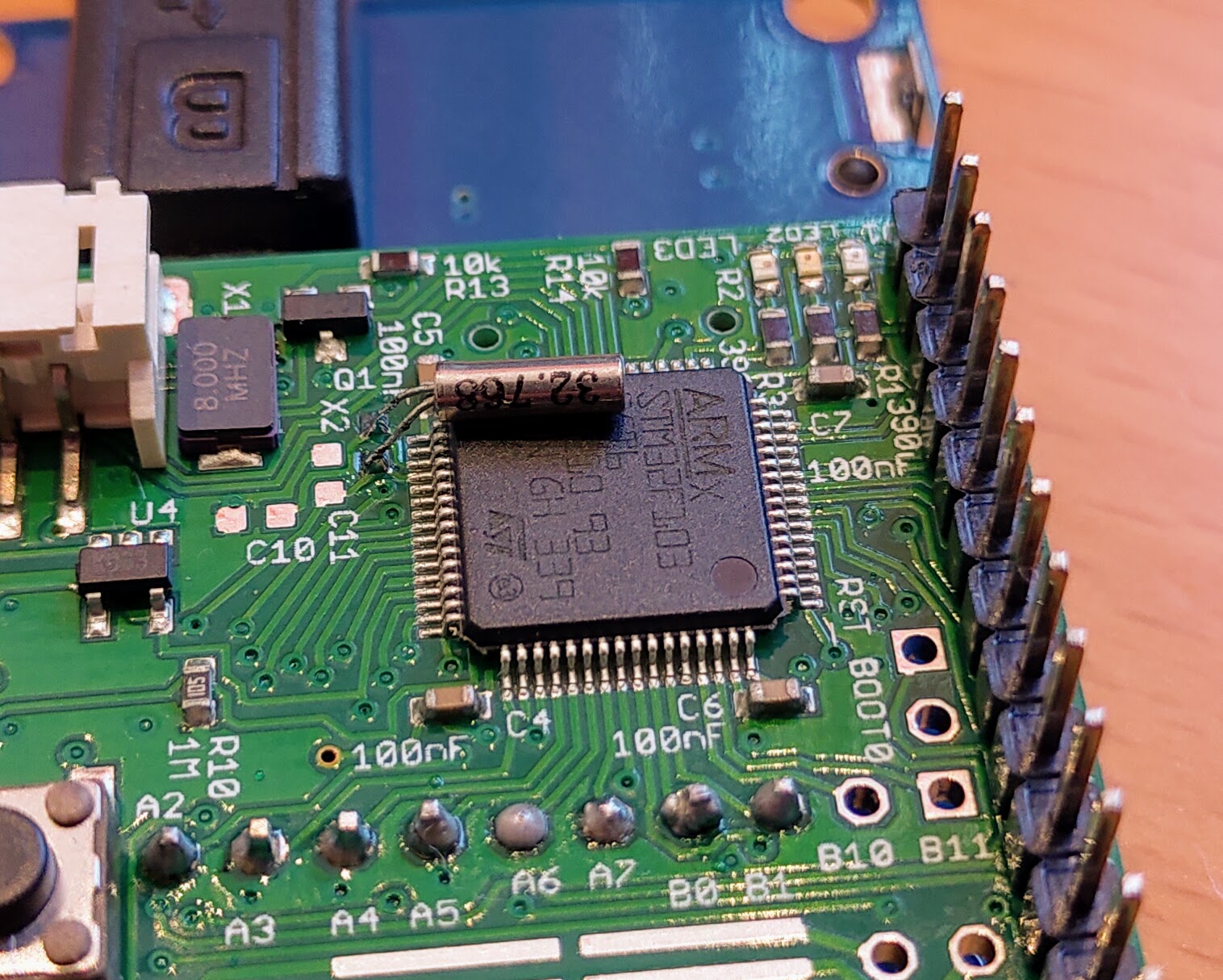 Yes, I have a version 1.3b. One of the first boards I guess? Your code reports "LSI" so I guess that means the Low-speed internal (LSI) RC oscillator is active? I will solder the crystal now and see what happens. Thanks! Posted at 2020-05-07 by @gfwilliams