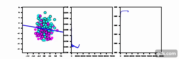 In the following gif, the blue line signifies the decision line to separate two classes. The decision line is adaptive to the centers of the classes, which shift in time.