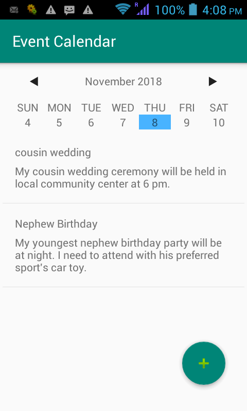 Simple event calendar android project using Room Database support with Livedata & kotlin.