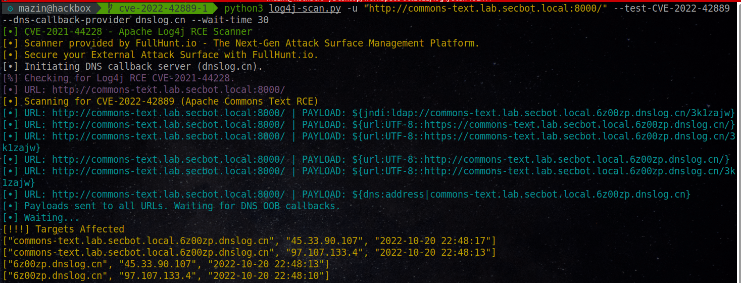 FullHunt released an update to identify Apache Commons Text RCE (CVE-2022-42889). Apache Commons Text RCE is highly similar to Log4J RCE, and we recommend patching it as soon as possible. Vulnerable applications allow full remote-code execution. If help is needed in scanning and discovering this vulnerability on your infrastructure, please get in touch at ([email protected]).