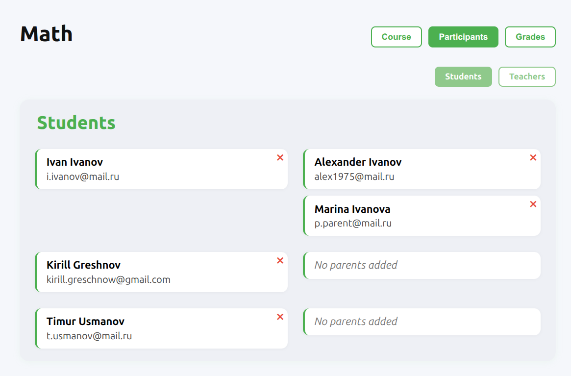 Teachers can easily create a course by simply entering its title, invite students and their parents, upload learning materials, and create assignments.