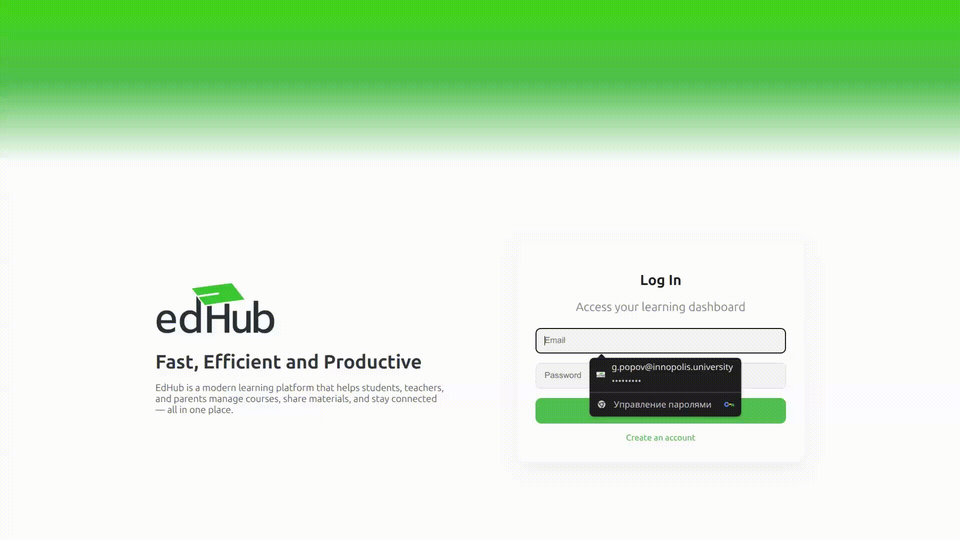 EdHub is a Learning Management System designed to facilitate interaction among teachers, students, and parents. It enhances the educational process by simplifying communication between stakeholders and increasing student engagement in learning.