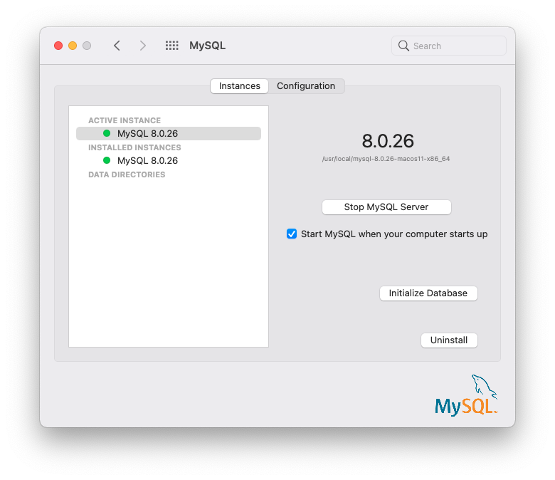 rootuser password must berootpasswhen setup MySQL Community Server- Visible in System Preferences when installed MySQL