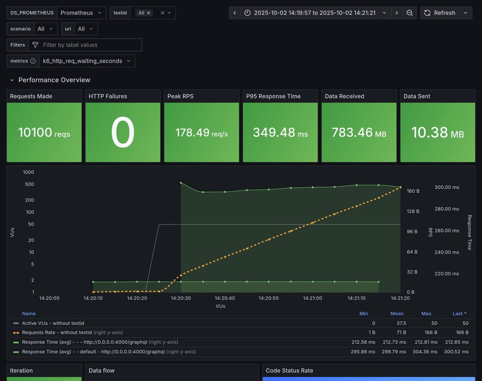 apollo-gateway | 124 | 10127 total, 0 failed | avg: 299ms, p95: 341ms | ✅ |