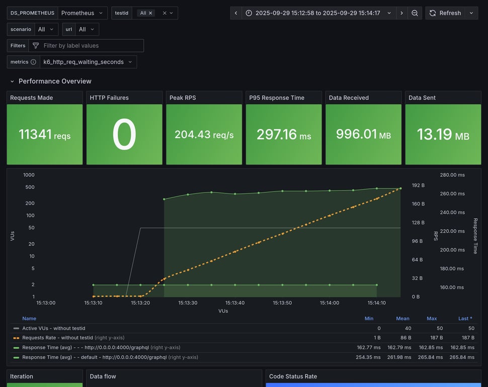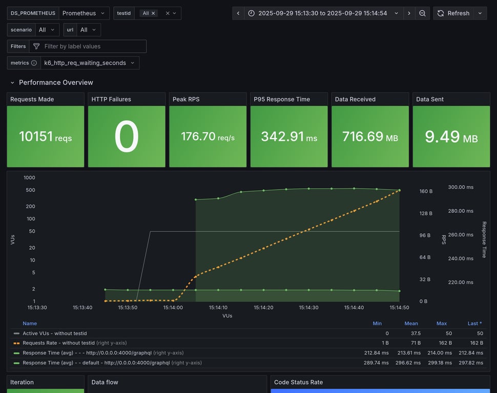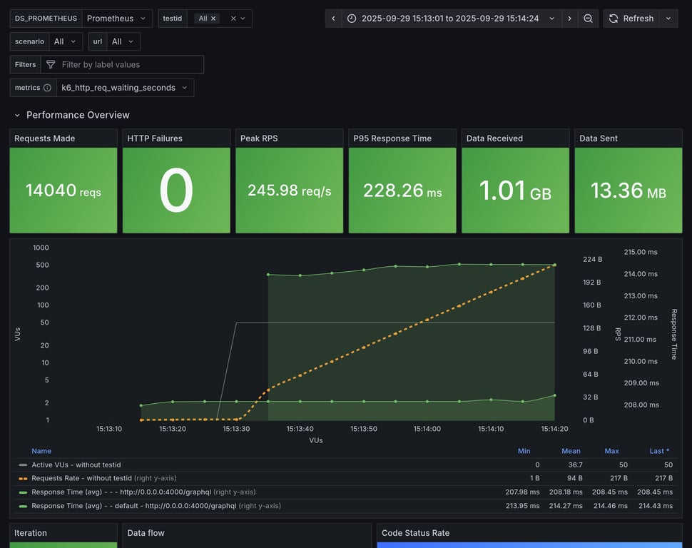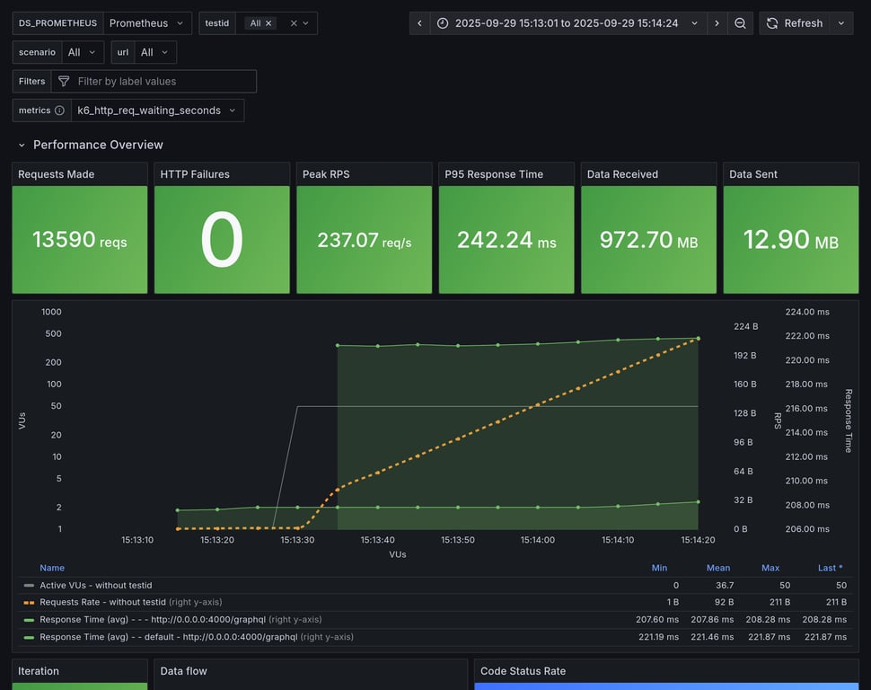 apollo-router | 129 | 10545 total, 0 failed | avg: 287ms, p95: 337ms | ✅ |