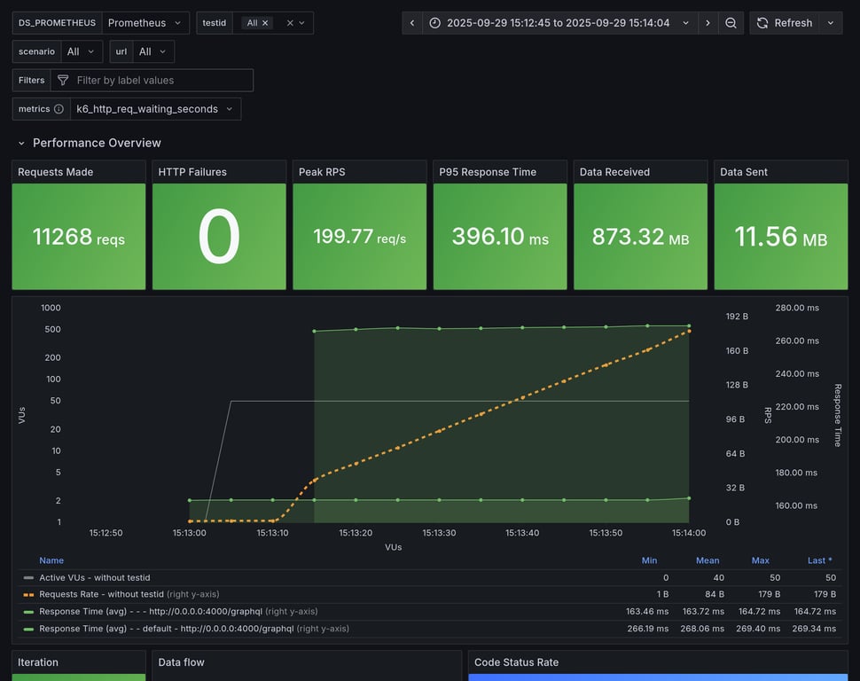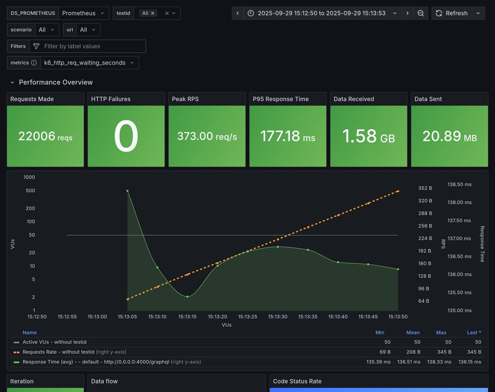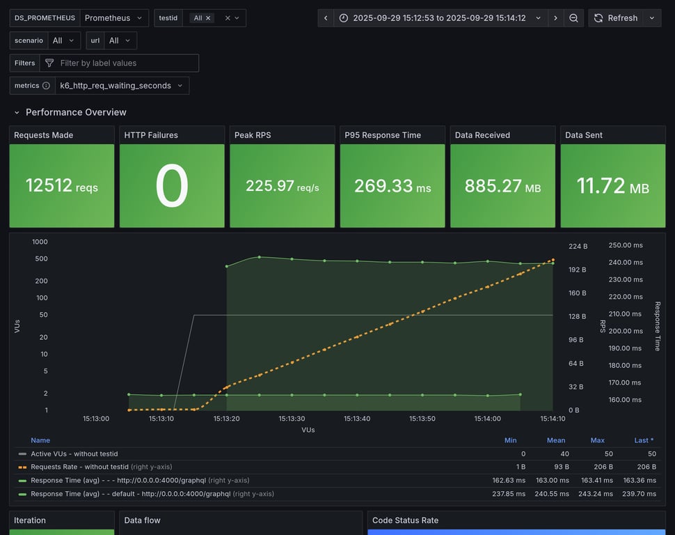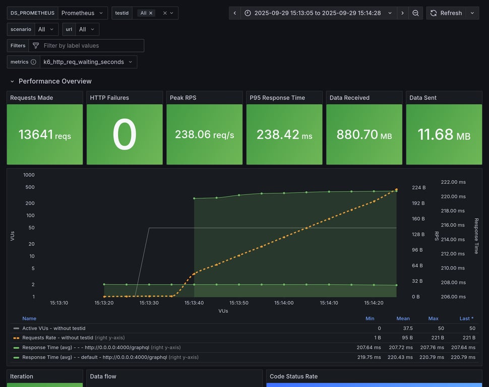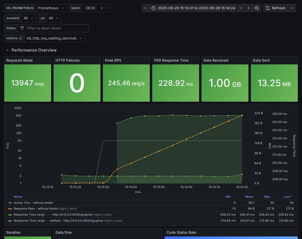 apollo-router | 129 | 10545 total, 0 failed | avg: 287ms, p95: 337ms | ✅ |