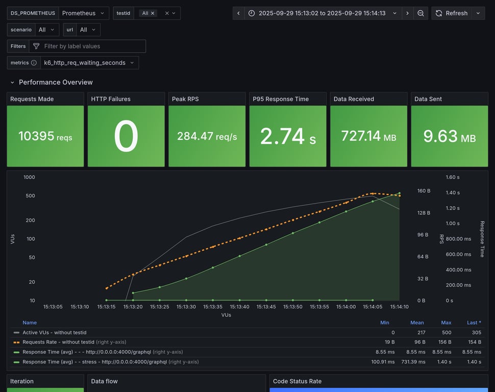apollo-gateway | 85 | 6963 total, 0 failed | avg: 434ms, p95: 480ms | ✅ |