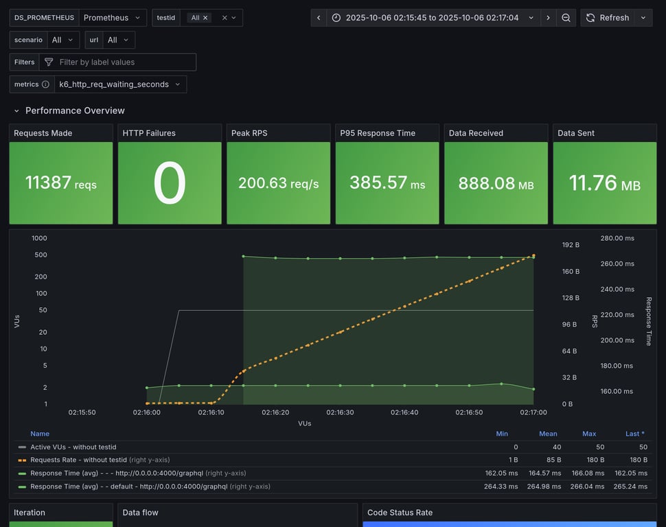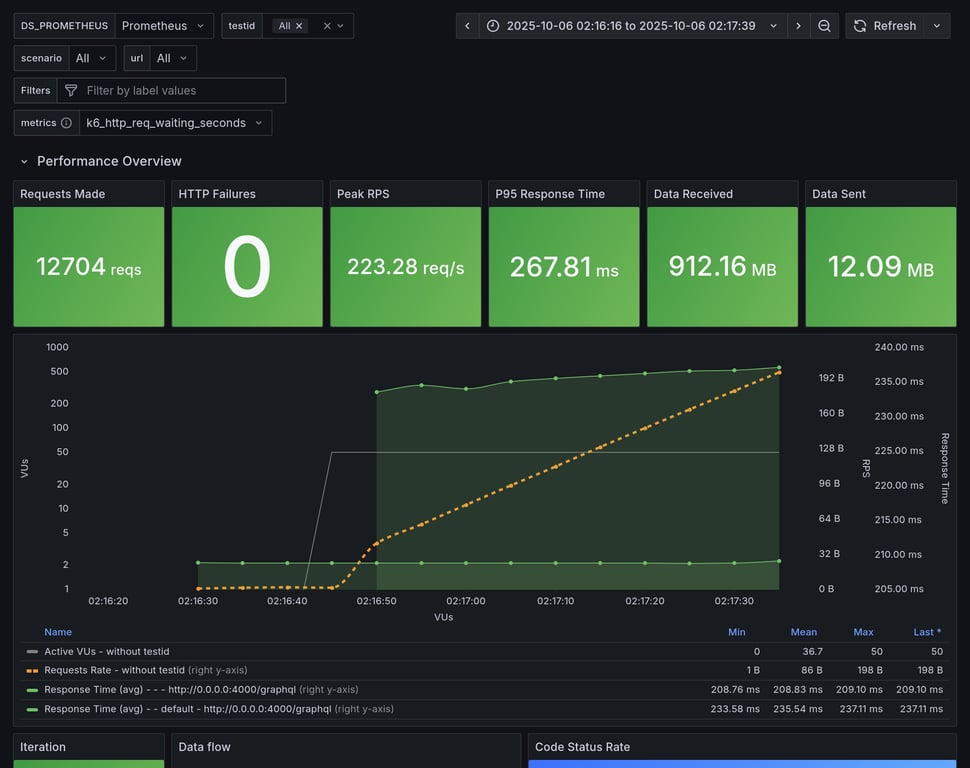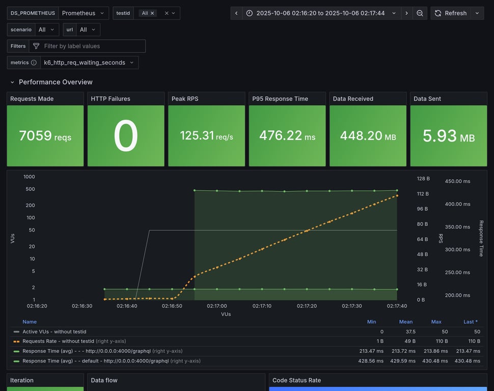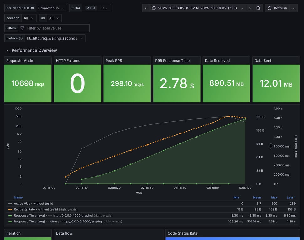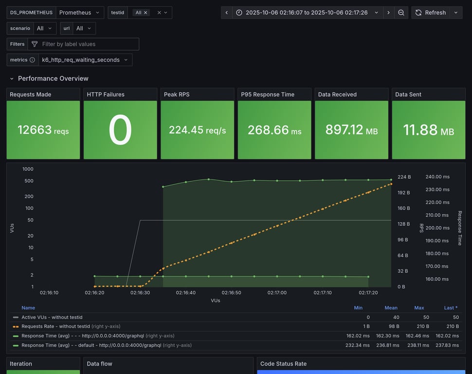 apollo-router | 390 | 26239 total, 0 failed | avg: 537ms, p95: 1206ms | ❌ 17 unexpected GraphQL errors, non-compatible response structure (1) |