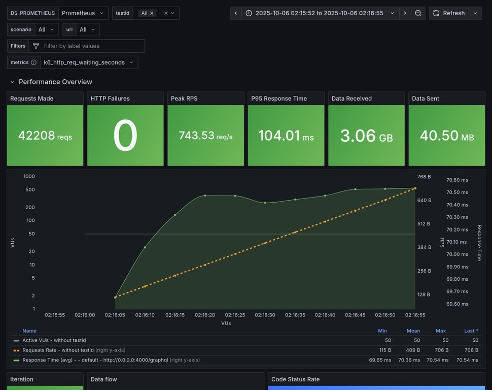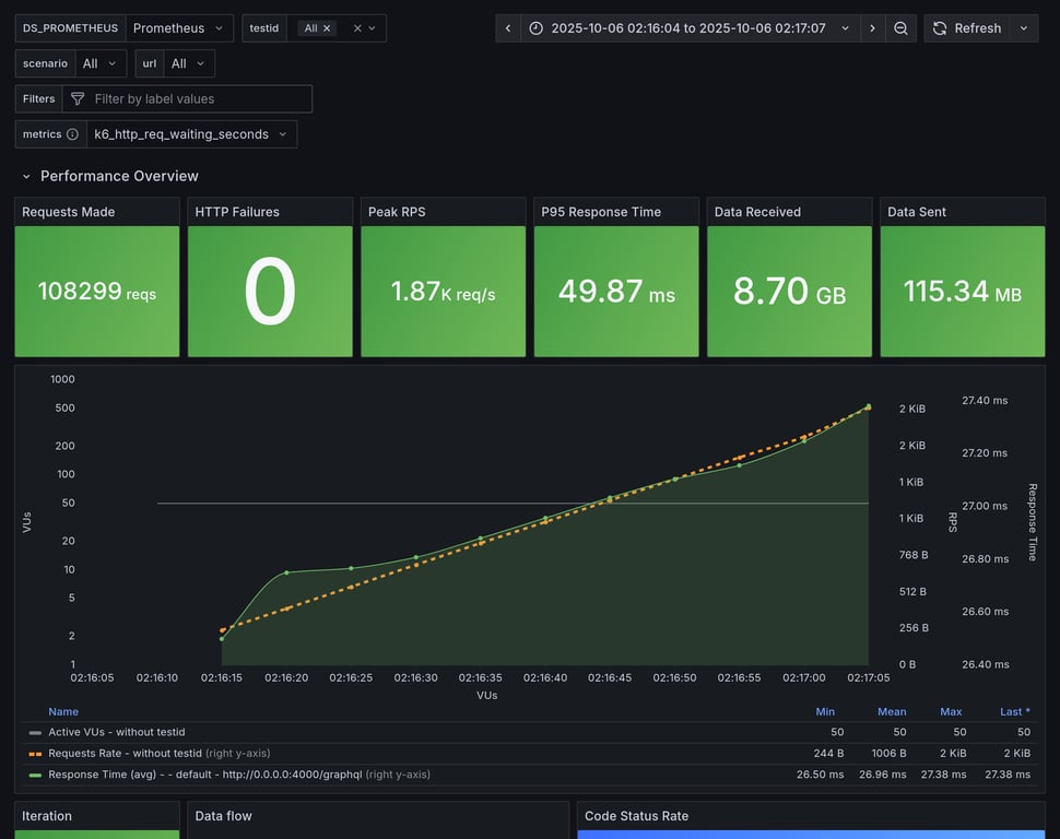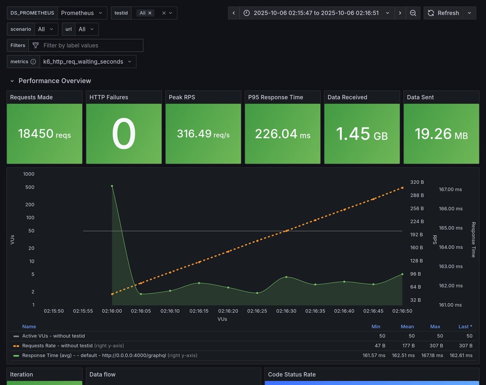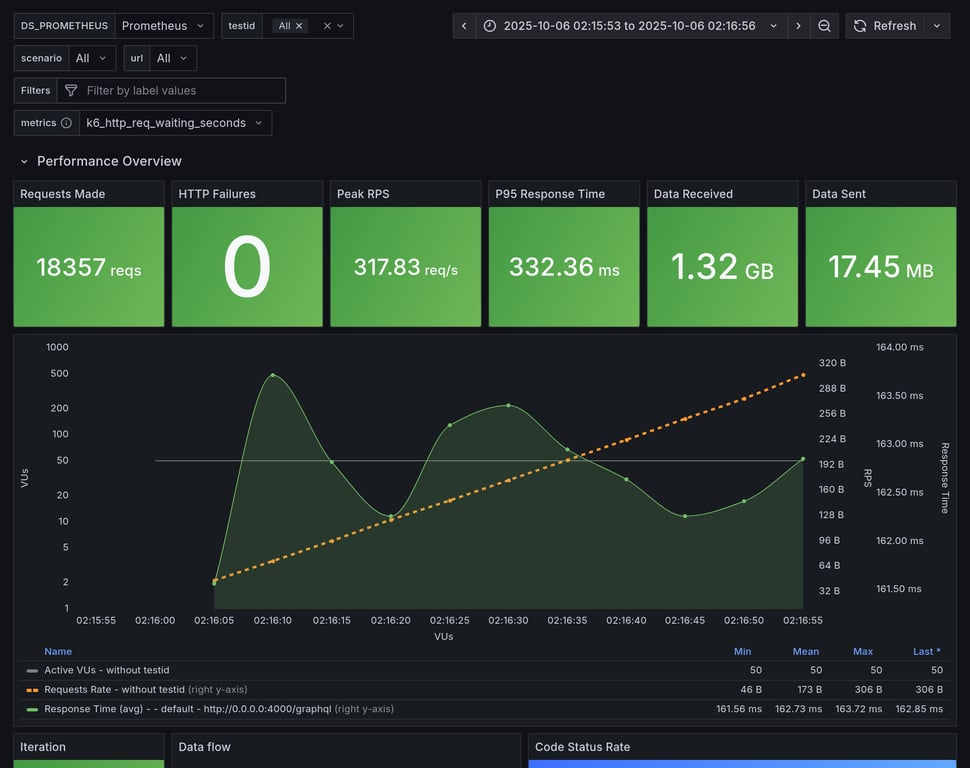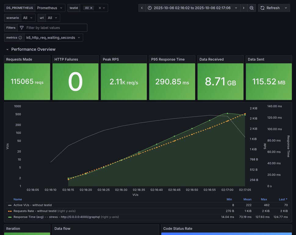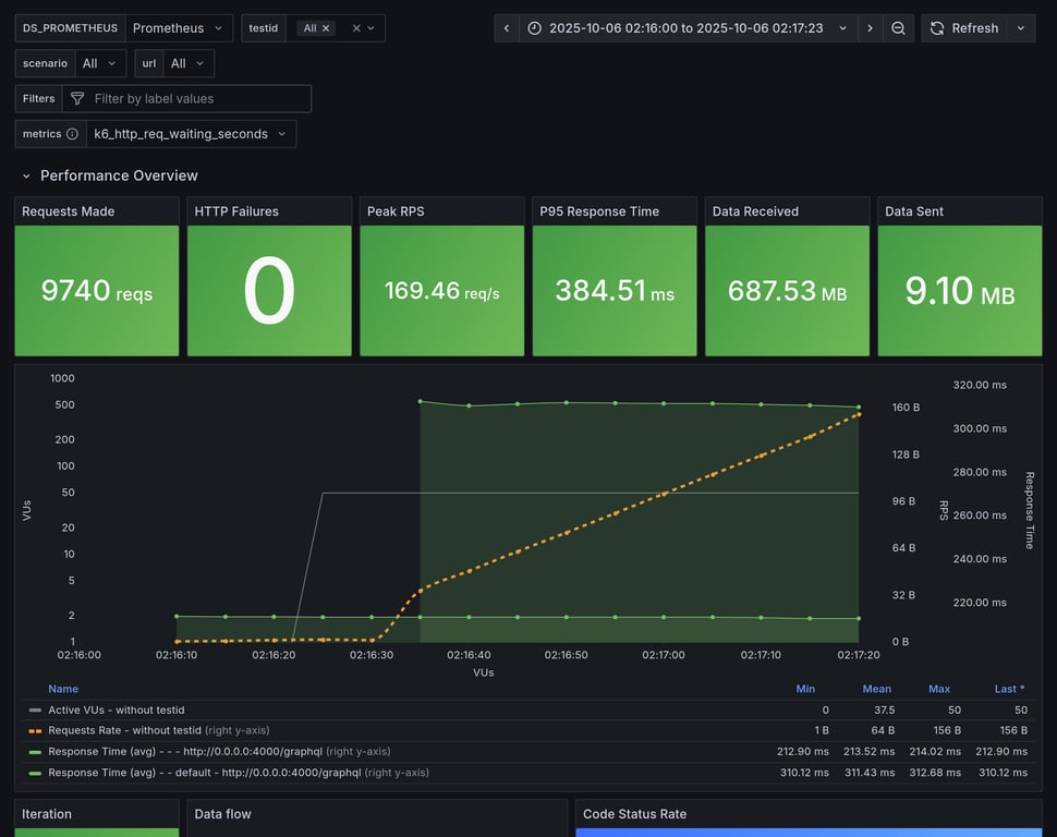 apollo-router | 390 | 26239 total, 0 failed | avg: 537ms, p95: 1206ms | ❌ 17 unexpected GraphQL errors, non-compatible response structure (1) |