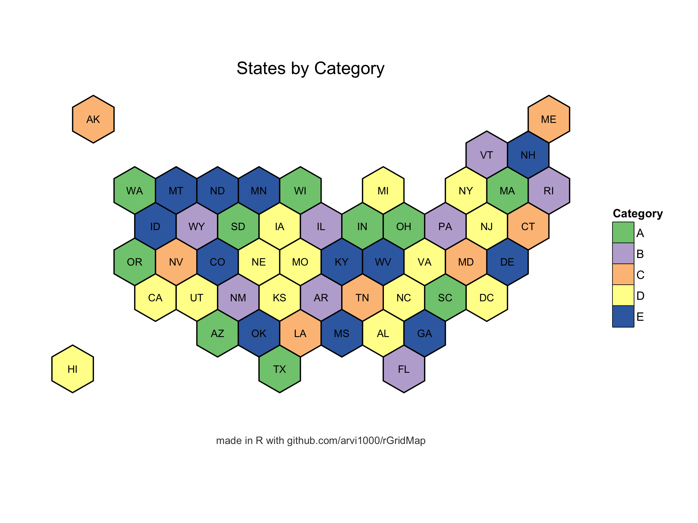 labs(title = 'States by Category', fill = 'Category')