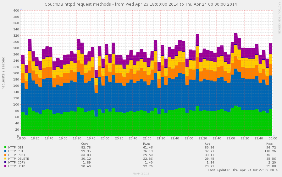 The couchdb_httpd_request_methods graph provides information about all HTTP