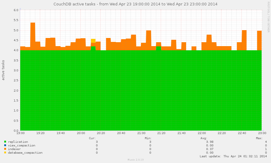 The couchdb_active_tasks graph shows current processes that runs on CouchDB: