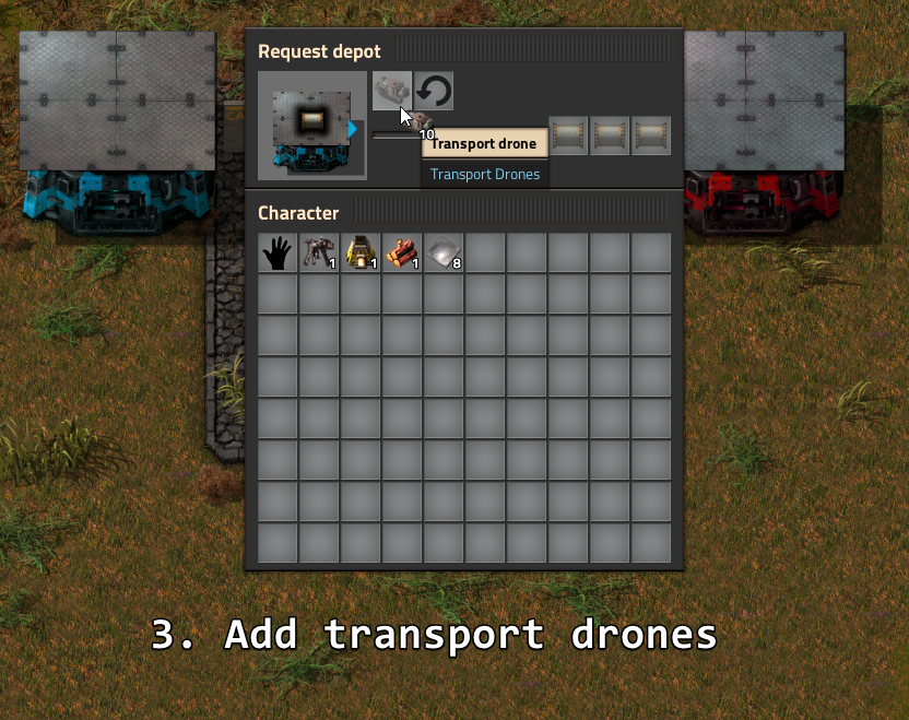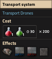 Drones start with a speed of 22km/h, and a stack capacity of 1. There are 2 upgrade technologies, Transport drone speed and Transport drone stack capacity.