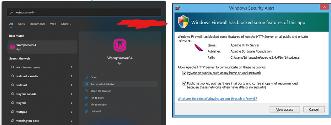 - Make sure to allow the app through your firewall should the option popup similar to when we were installing WAMP