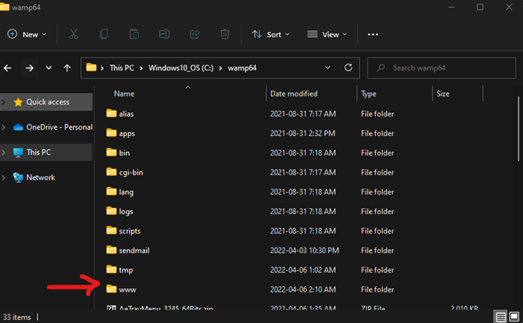 Now you can copy the project to the www directory within the WAMP installation folder: