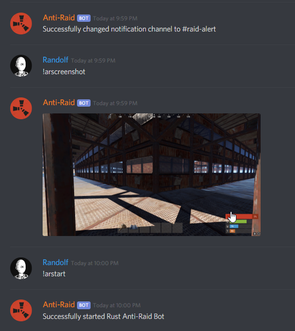 Rust Anti-raid bot for detecting intruders and reporting back to your discord server. Made in Python 3.6 and Tesseract-OCR, it monitors if the "Respawn" button is located in the bottom right (indicating death) and will then @everyone in the channel specified every X seconds (default is 3).