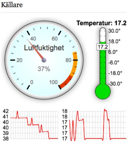 Det responsiva löser jag med Skeleton, som på ett lättviktigt och rent sätt hjälper mig med strukturen. Graferna ritar jag inte med graphite eftersom jag vill ha litet termometrar och mätare, samt kunna aminera dem. Valet denna gång föll på RGraph som mer än väl räcker till för mina behov. Det hela knyts ihop med jQuery.