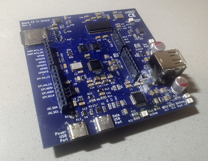 This repository contains version 2 of Mbed OS Community Edition's CI Test Shield board. This PCB is designed to help test the low-level I/O functionality of many different MCUs supported by Mbed OS.