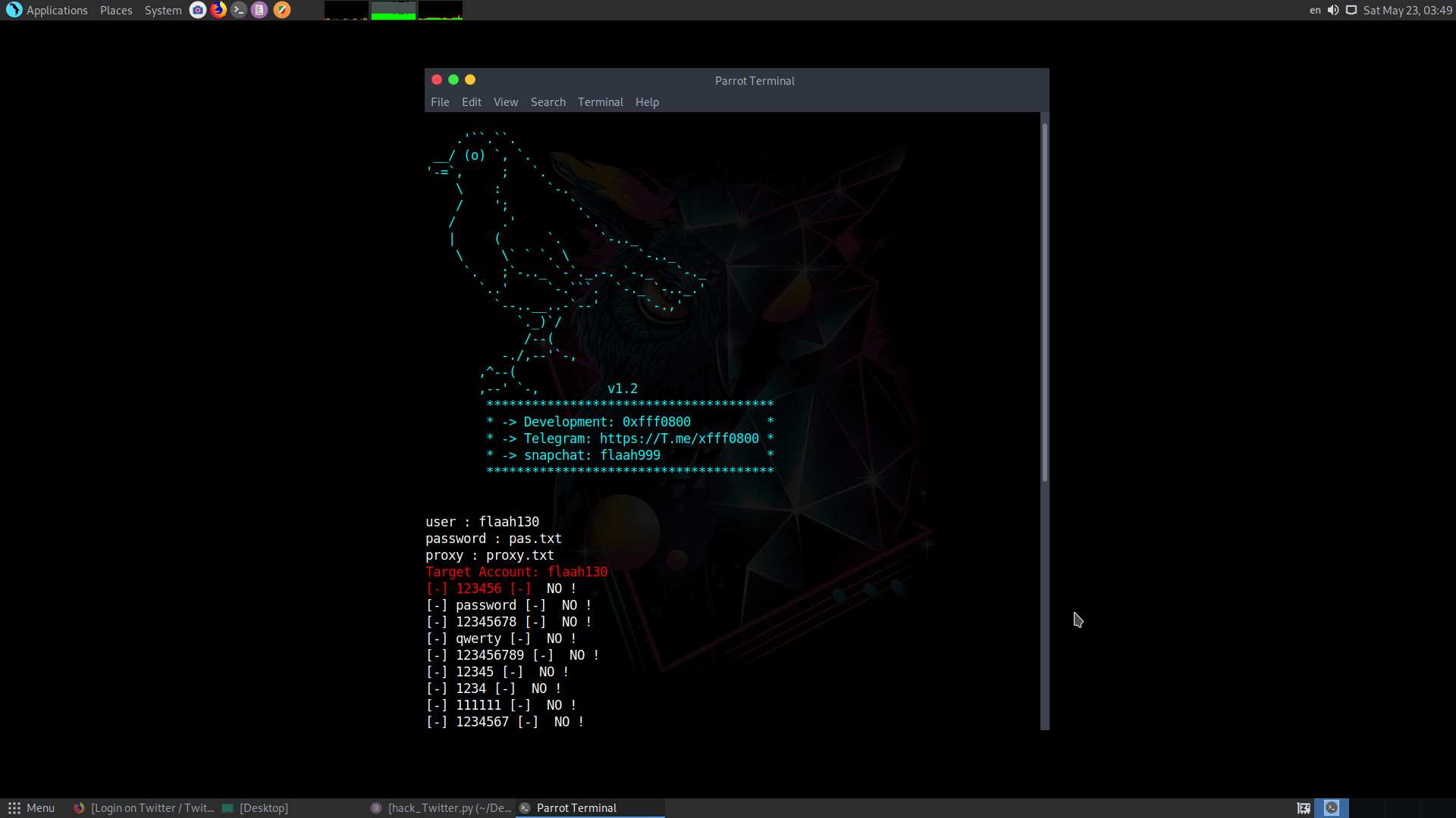 Usage of Brute-Forc-Twitter for attacking targets without prior mutual consent is illegal. It's the end user's responsibility to obey all applicable local, state and federal laws. Developers assume no liability and are not responsible for any misuse or damage caused by this program