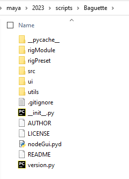 - unzip the Baguette folder into your Maya script folder. You should have something like this