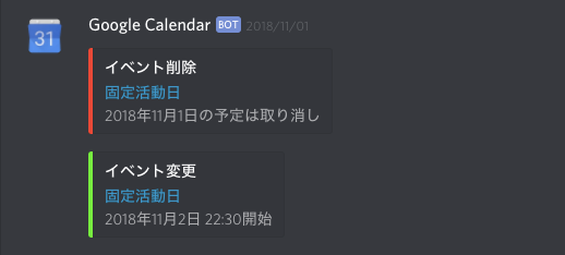 今日の予定を確認 | 今日活動日の場合、Discordにメッセージを送信 |