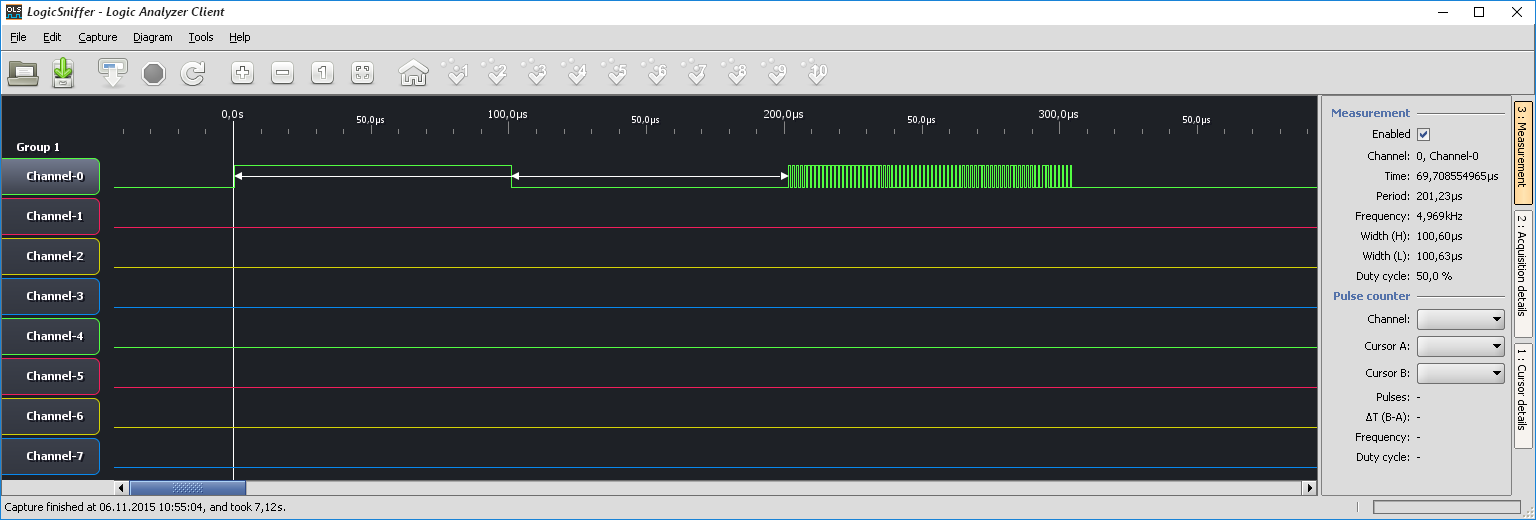 I have repeatedly pointed to this really excellent article which describes the needed timing: http://wp.josh.com/2014/05/13/ws2812-neopixels-are-not-so-finicky-once-you-get-to-know-them/ Or, maybe just use the timings from the manuka/adafruit code, where you have taken the rest of the code from. I am going to add two screenshots... Posted at 2015-11-06 by MarkusGritsch ad 1. Attachments: Posted at 2015-11-06 by MarkusGritsch ad 2. Attachments: Posted at 2015-11-06 by JumJum First I had the same problem with all three being white. Posted at 2015-11-06 by JumJum Oh, everything back to ground ;-) Posted at 2015-11-06 by Kolban Thanks for the feedback ... the two 100us long pulses at the start are debug that I put in ... I'll remove them for sure. I have also been testing with PL9823s as opposed to WS2811s or WS2812s. I'll next dig out some WS2812s ... and see if those start to fail. I'm kicking myself for not having tested with those in the first place. @markusgritsch ... everywhere I surf on the Internet I find your name related to these NeoPixel devices. You are certainly the most knowledgeable in that area. Folks like myself are acolytes in your footsteps here. I'll study the article you pointed at in great depth and see if I can't get the timings more accurate. If the WS2812 area for Espruino is something you yourself have particular interest in, I'll be delighted to work with you if you would be interested in getting a build environment for Espruino running at your work area. If not, your comments and timing results are EXTREMELY helpful ... thank you sir. Posted at 2015-11-06 by Kolban I tested with real WS2812s and exactly as you stated, the results were horrible. I examined my own timings and got exactly what y'all measured. The timing diagram for the PL9823s that I was using gives T0H as 0.35us and T1H as 1.36us ... while for real WS2812s ... T0H as 0.35us and T1H as 0.7us. In the actual timings now ... I have T0H as ~0.4us and T1H as ~0.95us. My tests are showing no errors. I have uploaded a new firmware ... can I ask y'all to try this build and see if we are getting closer? Posted at 2015-11-07 by MarkusGritsch Did a quick test. Seems to work fine :) The article I mentioned suggests 350 ns and 700 ns as the typical timings though. Posted at 2015-11-07 by JumJum May be, this is of help to define timing for several LED-strings. Posted at 2015-11-07 by Kolban @jumjum ... well ... that idea of yours makes perfect sense. Instead of "neopixelWrite" being a static function, maybe we create a class called "NeoPixel" with methods on it like "write" to write a stream of data and "init" to identify the data pin as well as set the T0H, T1H, T0L and T0H values. Then, in principle, any and all devices would work and all we would have to do is publish the working values. However ... at this point, given that the current neopixelWrite() method seems to be working for the majority of us ... I'm tempted to flag that as "future" and attack some of the higher priority items in Espruino land. As it is, I'm not sure we ever reached consensus on whether or not to include NeoPixel support in native Espruino (ESP8266 specific or otherwise). I'm assuming that you yourself are able to drive NeoPixels? Posted at 2015-11-08 by MarkusGritsch