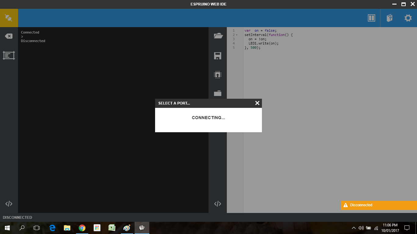Posted at 2017-10-02 by Wilberforce After flashing, on windows 10, I have found that you need to unplug the USB cable and then plug it in again. Then you will be able to connect with the ide or putty. It is only after a new flash that you have this suitation. Posted at 2017-10-02 by jinantha Thanks Wilberforce for your reply. This is the board version I have. see attached. Attachments: Posted at 2017-10-06 by swaroop Did you make any progress with this issue? i am having the same issue and an extensive google search revealed nothing. It seems that this board has a firmware support yet i dont see a lot of activity around it. Posted at 2017-10-06 by jinantha sorry nothing yet :( Posted at 2017-10-09 by @gfwilliams How about trying to flash the single 'combined' file to address 0? That's what I've been doing and it seems to work pretty well. Posted at 2017-10-09 by jinantha Thanks, Posted at 2017-10-09 by swaroop