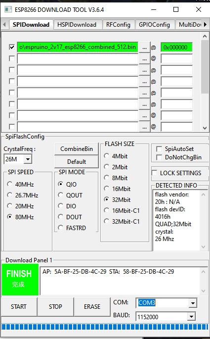 Posted at 2024-01-03 by ZeoNish Not work... Bug? Attachments: Posted at 2024-01-04 by @MaBecker Hmm, is there a reason why you do not flash the 4MB firmware file? First step is to erase and than flash. Posted at 2024-01-04 by ZeoNish 2v16, 2v17 work 512 file and 4 mb file. 2v18, 2v19 512 file not work. 4 mb work. Attachments: Posted at 2024-01-04 by ZeoNish post close... all good... |
