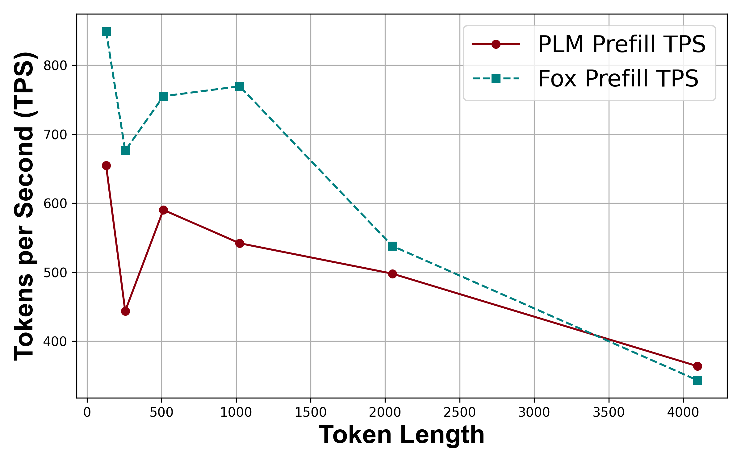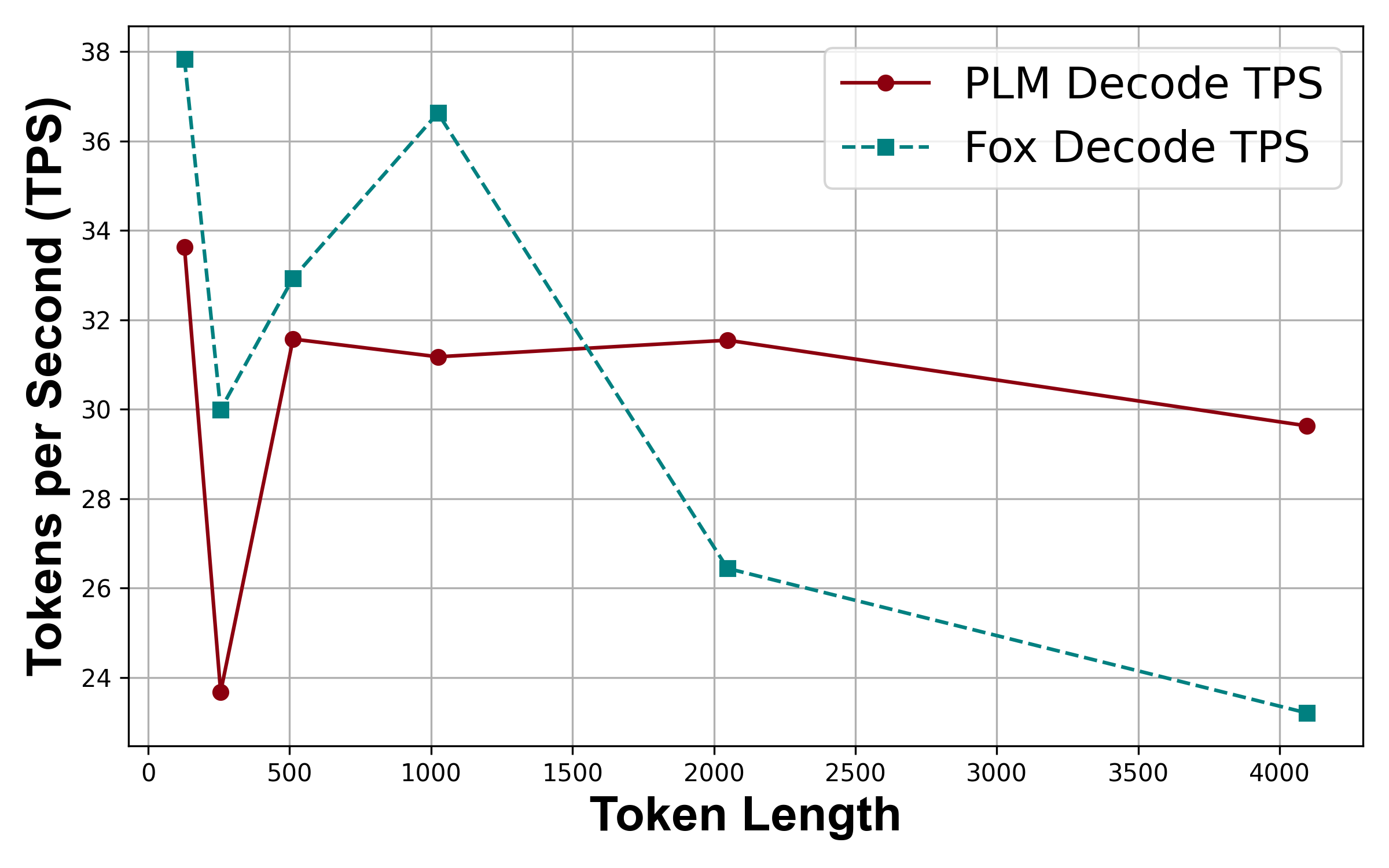 PLM demonstrates highly competitive performance along with a series of advantages stemming from its modeling and system co-design. These benefits include impressive inference speed, extreme sparsity, and reduced KV cache due to MLA, enabling it to outperform models with the same number of layers when handling long-context inference tasks at certain sequence lengths.