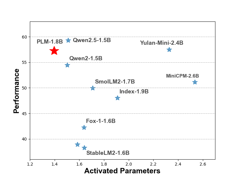 PLM-1.8B is a strong and reliable model, particularly in basic knowledge understanding, coding and simple reasoning tasks.
